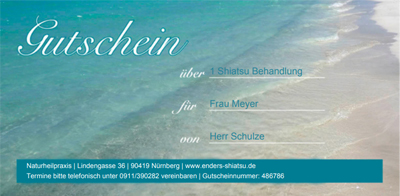 Die von Ihnen eingetragenen Daten werden nur für die Erzeugung des Gutscheines verwendet. Desweiteren werde ich darüber informiert, dass ein Gutschein erzeugt wurde. Sie sind völlig frei in der Verwendung von Namen und nicht gezwungen, Ihren wirklichen Namen zu verwenden.